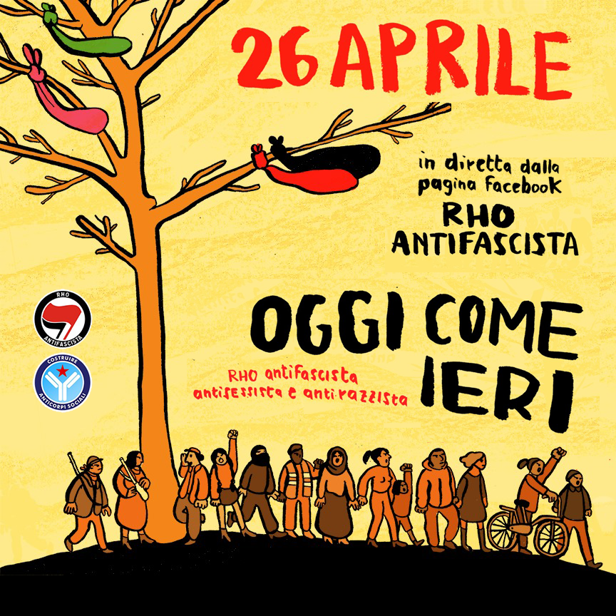 1945-2020OGGI COME IERI – Rho ama la libertàDomenica 26 aprile – dalle ore 16:30in diretta sulla pagina Facebook di Rho antifascistae su https://live.autistici.org/#OggiComeIeri L’ormai tradizionale 25 aprile rhodense con musica, teatro e interventi quest’anno va in streaming live. 👉 Per costruire gli anticorpi sociali contro i virus del fascismo, del razzismo e del sessismo, questa quarantena non ci impedirà di prenderci lo spazio pubblico per festeggiare la Liberazione e reclamare sempre nuove Liberazioni! Dal “palco” resistente di “Oggi come Ieri ” con musica, teatro ed interventi, si alterneranno: 👉 Ricky Gianco👉 Fabio treves👉 La Dava (Vallanzaska)👉 Alessio Lega👉 Gianluca Spirito...